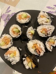 Buna! Sambata asta vreau sa fac si eu pentru prima data sushi, insa nu cu peste crud ca nu ne place si ma gandeam la ton din conserva, cu crema de branza, avocado si castraveti sau morcov. Insa voiam sa te intreb, crema de branza se intinde pe toata suprafata nori-ului sau o pun doar pe mijloc peste umplutura? Multumesc!