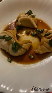 Gyoza este versiunea japoneza a celebrilor coltunasi chinezesti Jiaozi, cu foi subtiri de aluat, umplute cu carne sau legume. Deosebirea dintre cele 2 preparate consta in tehnica de gatire. Dupa ce sunt modelati, gyoza sunt rumeniti mai intai in tigaie in putin ulei, gatiti apoi inabusi in acceasi tigaie iar la final sunt stropiti cu ulei de susan si prajiti pana cand baza devine crocanta, spre deosebire de Jiiaozi care sunt gatiti doar la abur. Foile pentru gyoza se pot cumpara din magazinele asiatice sau se pot pregati in casa, tot ce aveti nevoie este faina, apa si sare. In aceasta varianta vegetariana, foile sunt umplute cu un amestec din varza alba, varza rosie, ciuperci Champignon, ciuperci Shiitake, morcov, ceapa, ceapa verde, tofu, ghimbir si usturoi, toate legate de un sos din pasta miso, sos de soia si ulei de susan. Gyoza se servesc calzi alaturi de un sos.